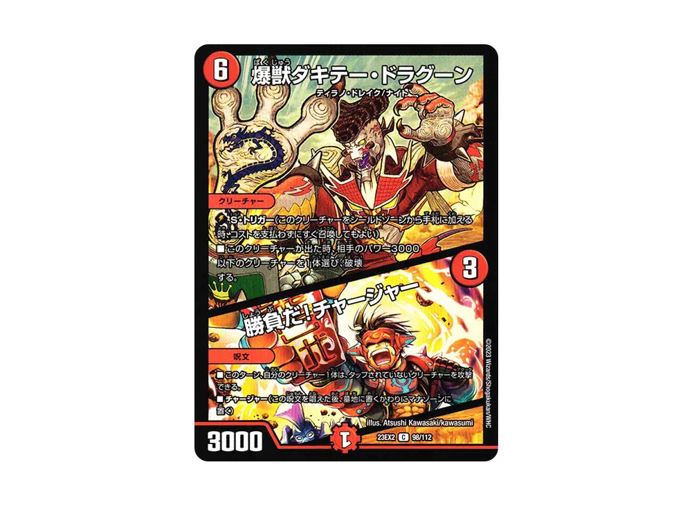 4. 爆獣ダキテー・ドラグーン / 勝負だ!チャージャー C [DM23-EX2 98/112](頂上決戦!!デュエキングMAX 2023)(Dacity Dragoon, Explosive Beast / Game On! Charger C [DM23-EX2 98/112](Summit Battle!! Dueking MAX 2023))