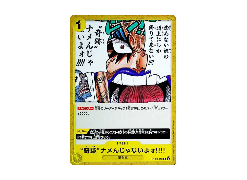 4. ”奇跡”ナメんじゃないよォ!!!! C [OP09-116](ブースターパック「新たなる皇帝」)(Don't underestimate a miracle! C [OP09-116](Booster Pack "Emperors In The New World"))