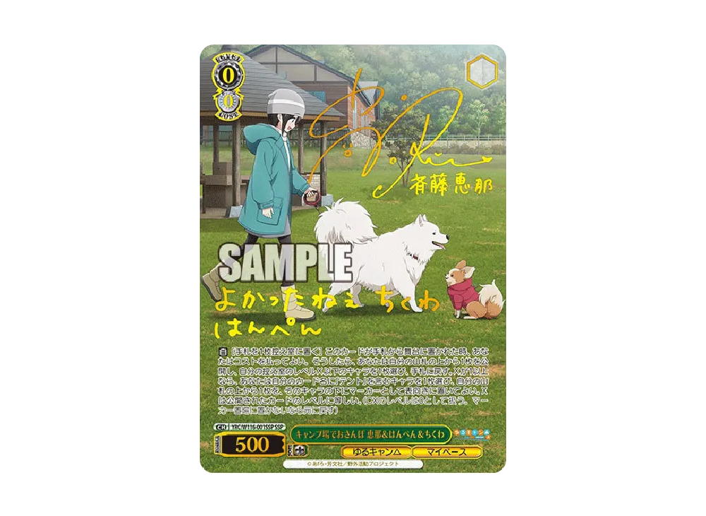 キャンプ場でおさんぽ 恵那&はんぺん&ちくわ SSP [YRC/W116-001SSP](ブースターパック「ゆるキャン SEASON 3」)(Stroll At The Campsite Ena & Hanpen & Chikuwa SSP [YRC/W116-001SSP](Booster Pack "Laid-Back Camp SEASON 3"))