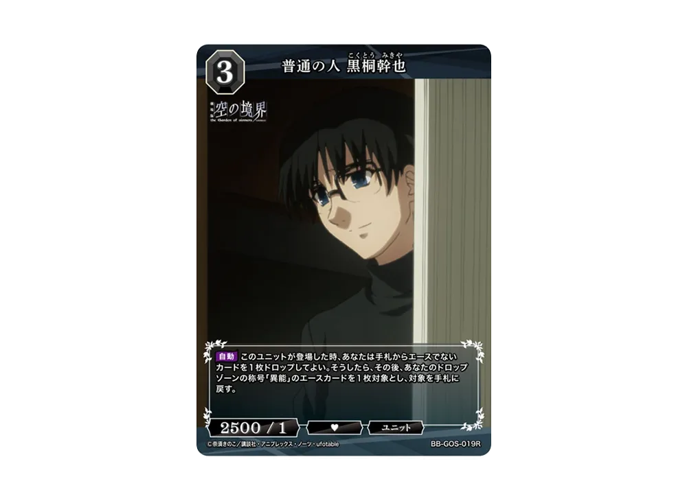 普通の人 黒桐幹也 R [BB-GOS-019R](ブースターパック「劇場版 空の境界 / 空の境界 未来福音」)(Normal Person Mikiya Kokuto R [BB-GOS-019R](Booster Pack "Movie Version Sky's Boundary / Sky's Boundary Future Gospel"))
