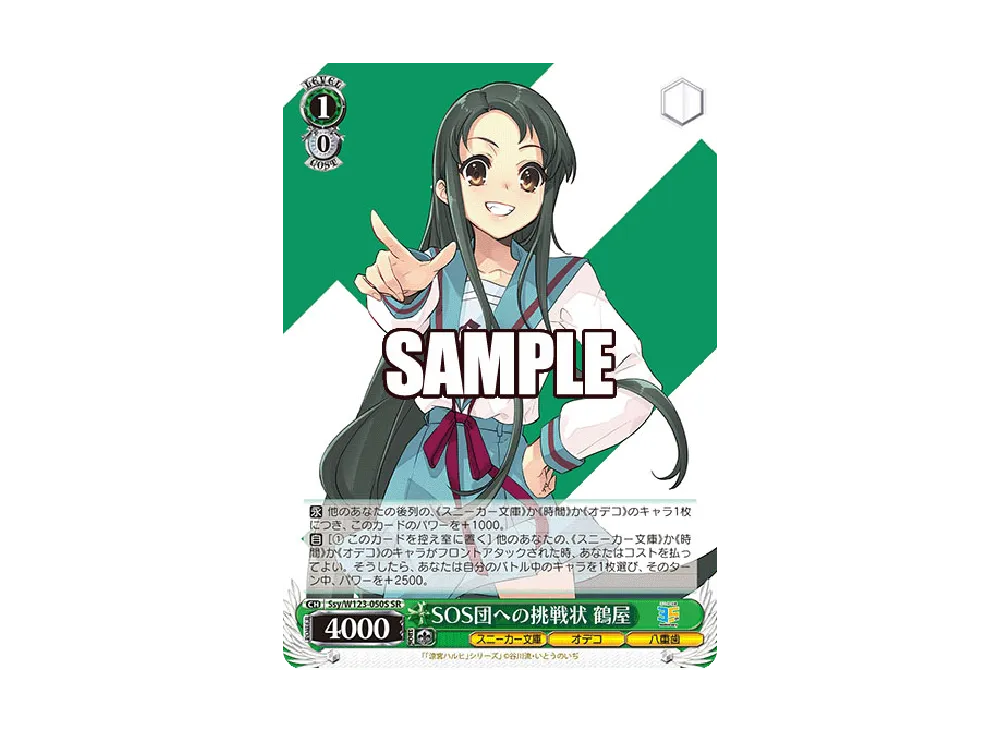 SOS団への挑戦状 鶴屋 SR [Ssy/W123-050S](ブースターパック「角川スニーカー文庫 Vol.2」)(Challenge To The Sos Brigade Tsuruya SR [Ssy/W123-050S](Booster Pack "Kadokawa Sneaker Bunko Vol.2"))