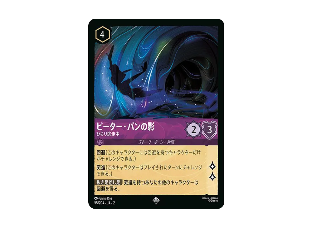 ピーター・パンの影 - ひらり逃走中 SR [55/204 JA-2](ライズ オブ ザ フラッドボーン フラッドボーンの渾沌)【日本語版】(Peter Pan's Shadow - Not Sewn On SR [55/204 JA-2](Rise Of The Floodborn) [Japanese Ver.])