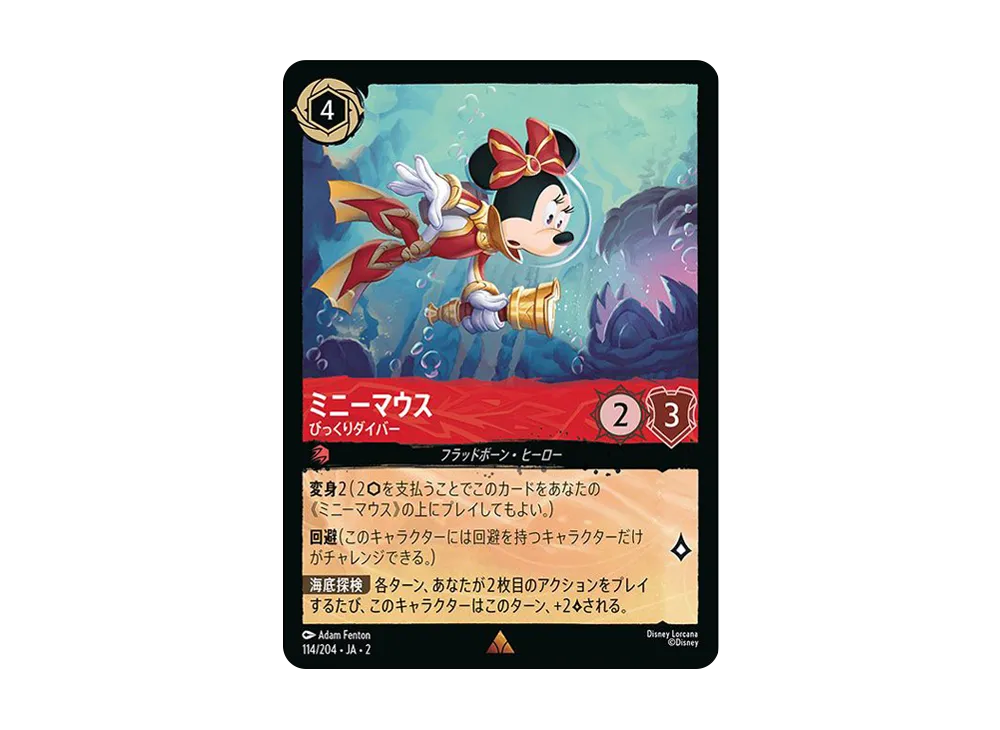 ミニーマウス - びっくりダイバー R [114/204 JA-2](ライズ オブ ザ フラッドボーン フラッドボーンの渾沌)【日本語版】(Minnie Mouse - Wide-Eyed Diver R [114/204 JA-2](Rise Of The Floodborn) [Japanese Ver.])