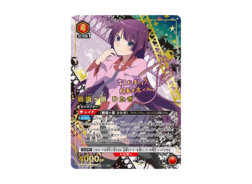 4. 戦場ヶ原 ひたぎ SR★★ [UA42BT-MGS-1-083](ブースターパック「〈物語〉シリーズ」)(Hitagi Senjogahara SR** [UA42BT-MGS-1-083](Booster Pack "Monogatari Series"))