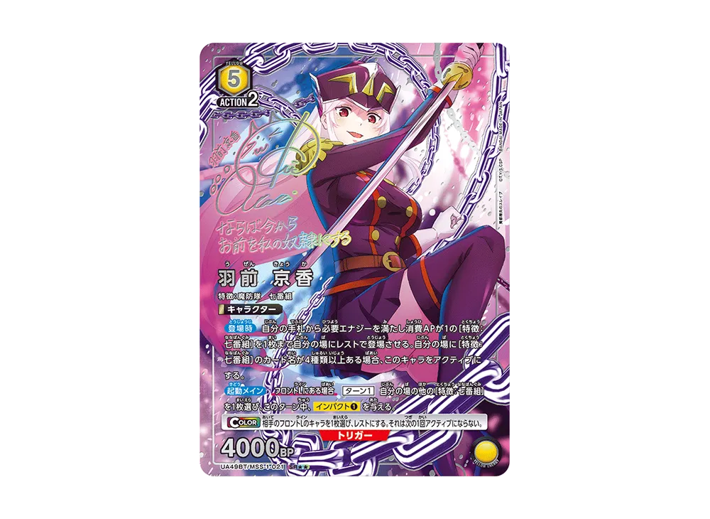 羽前 京香 SR★★ [UA49BT-MSS-1-021](ブースターパック「魔都精兵のスレイブ」)(Kyouka Uzen SR** [UA49BT-MSS-1-021](Booster Pack "Chained Soldier"))