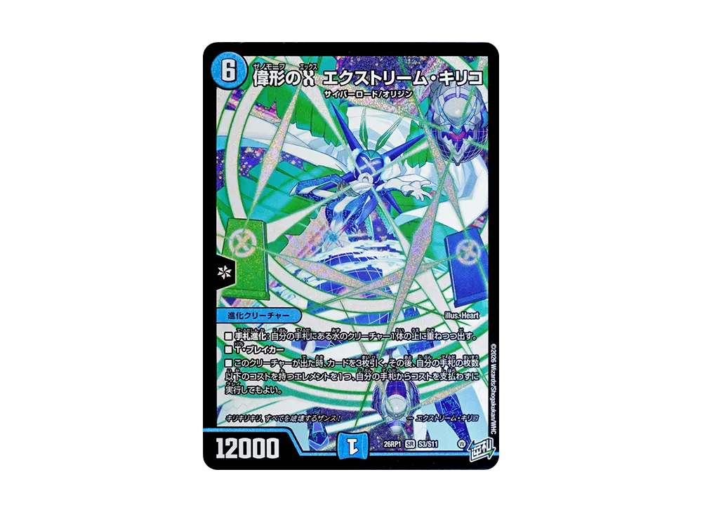 偉形のX エクストリーム・キリコ SR [26RP1 S3/S11](逆札篇 第1弾「逆転神VS切札竜 ガルド・オブ・ボルメテウス」)(Extreme Kiriko, Xenomorph X SR [26RP1 S3/S11](Exdream Series 1st "Reversal God VS Trump Card Dragon Guard of Bolmeteus"))