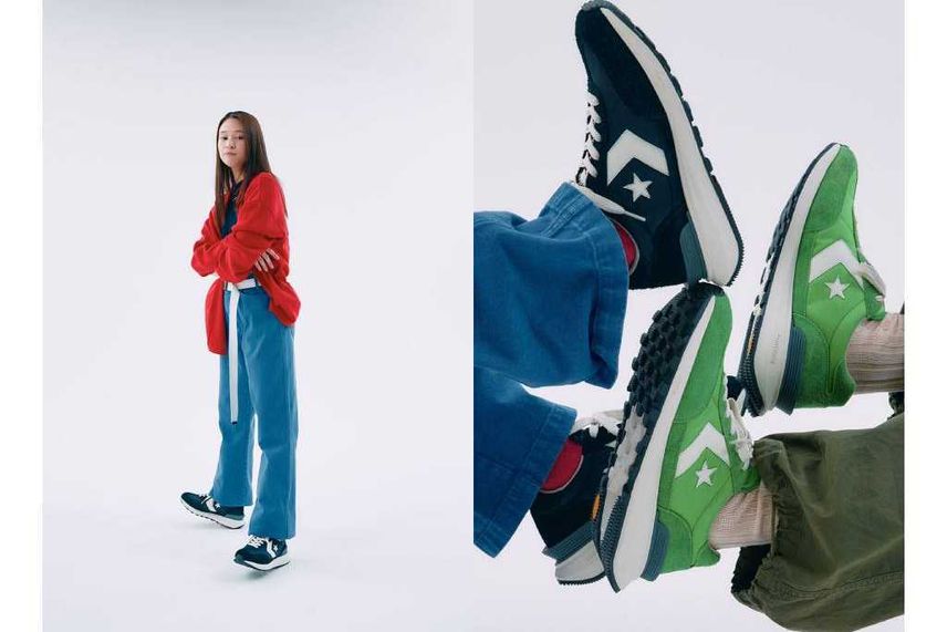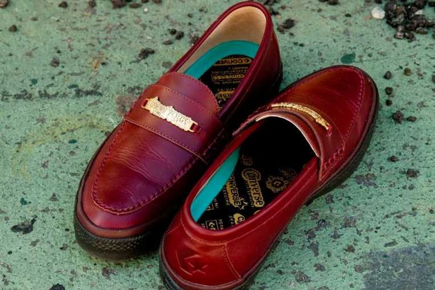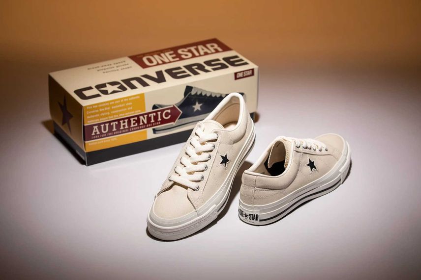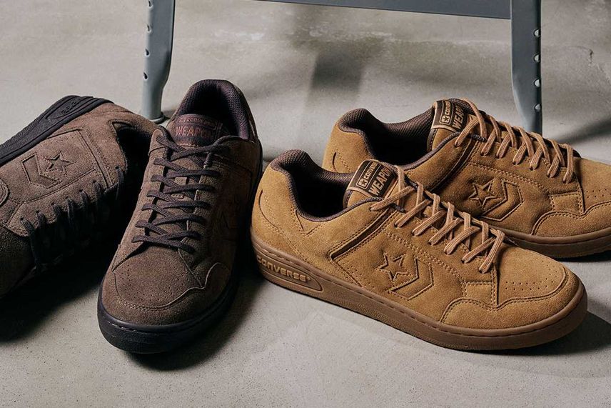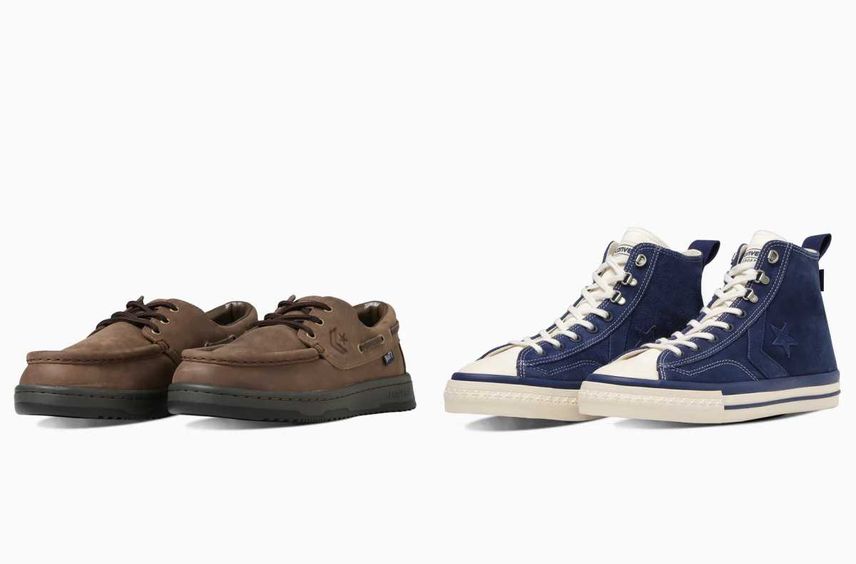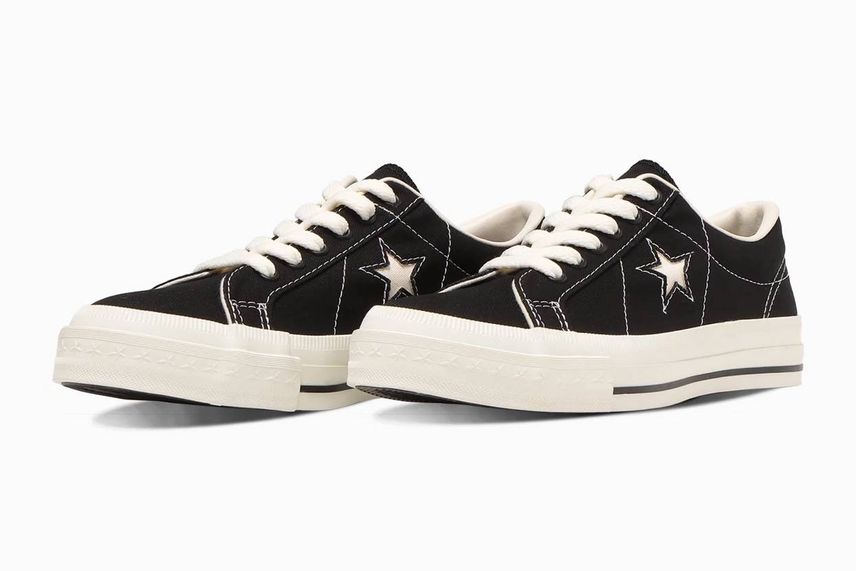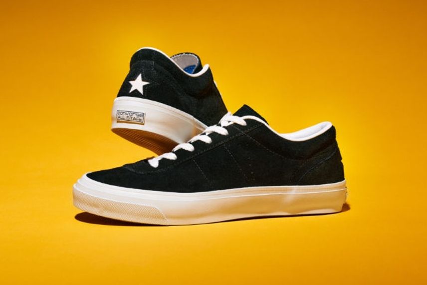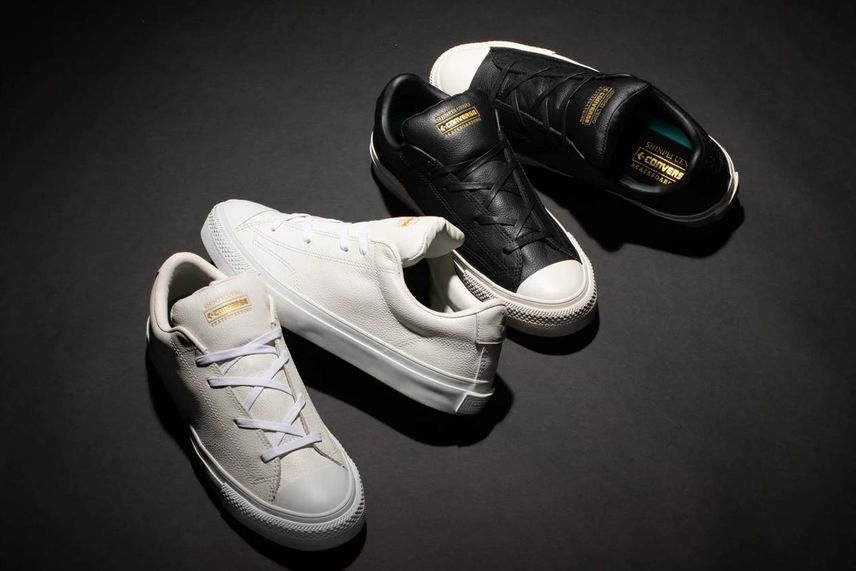今回のコラボスニーカーはコンバースのプロレザーをベースとしており、ブラックのスムースレザーに、サイドのCHEVRON & STAR(シェブロン スター)やスタッズなど、シルバーカラーでコントラストをつけたモデルとなっている。また、外側のシェブロンスターがビッグサイズにアレンジされているほか、クールなマスターマインドロゴがより一層スタイリッシュさを演出してくれるデザインとなっているぞ。
