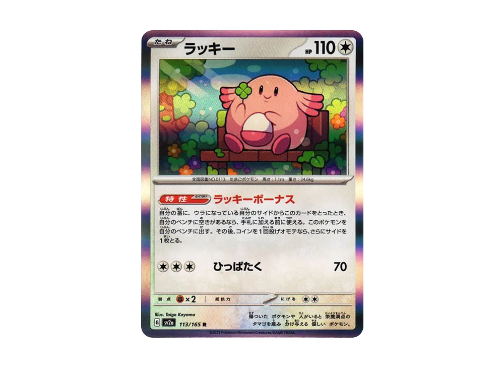 大人から子供まで幅広い層から支持されている人気ポケモンであることから、"SAR"だけでなく"SR"も注目を集め、現在も活発な取引が見受けられる1枚。