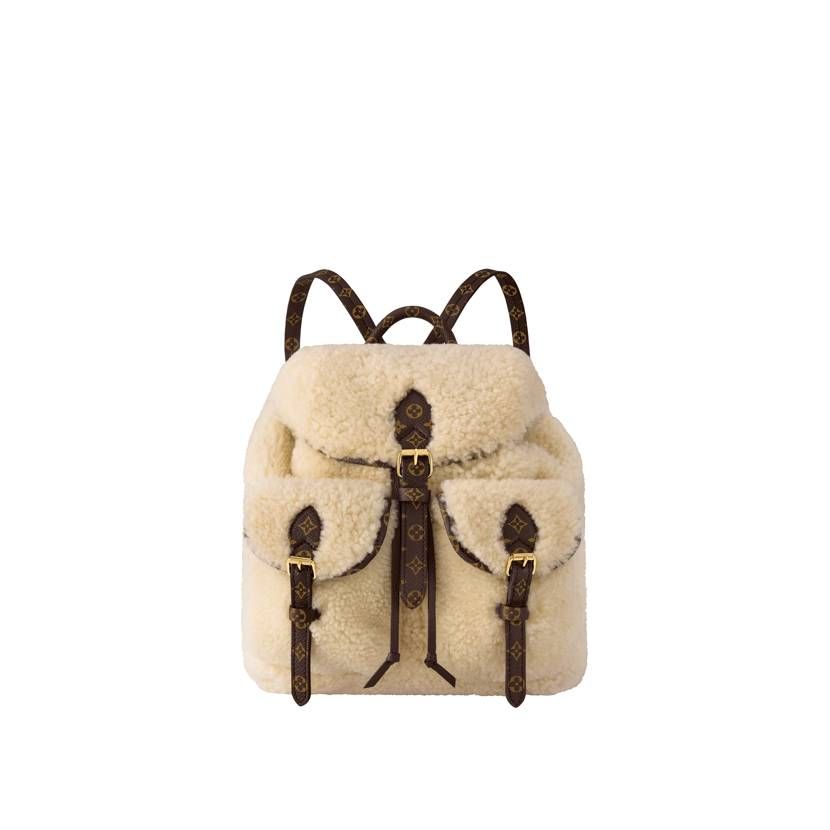 ラグジュアリーなふわもこディティールで登場するのは、スピーディ・バンドリエール 25、オーバー ザ ムーン、バムバッグ、バックパックの4アイテム。グレインレザーのトリミングが施された、極上の手触りのシアリングで仕上げたバッグとなっている。特徴的なモノグラム・ジャイアントは、インターシャ(象嵌細工)技法を用いて異なる2色のシアリングで表現。ゲレンデでの使用を想定したバッグパックは、アウトドアシーンまで上品さを持ち出すことができる逸品だ。