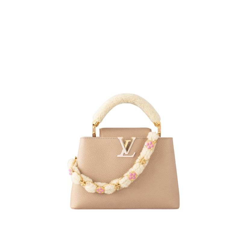 メゾンのアイコンバッグである"Capucines(カプシーヌ)"も冬仕様にアップデート。トリヨンレザーを採用し、ハンドルと付属チェーンにシアリングをあしらい、柔らかな雰囲気のカプシーヌに仕上げた。ゴールドカラーのメタルが輝くモノグラム・フラワー モチーフで彩ったデザインも魅力的だ。