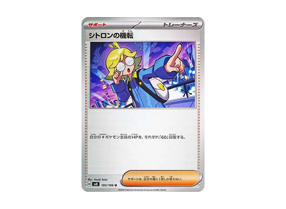本カードでは工具を持って何か作業をしている様子が描かれており、"発明で人とポケモンを幸せにすること"を信念に掲げる「シトロン」らしさが表現されている。そのため、人気の一枚となっている。