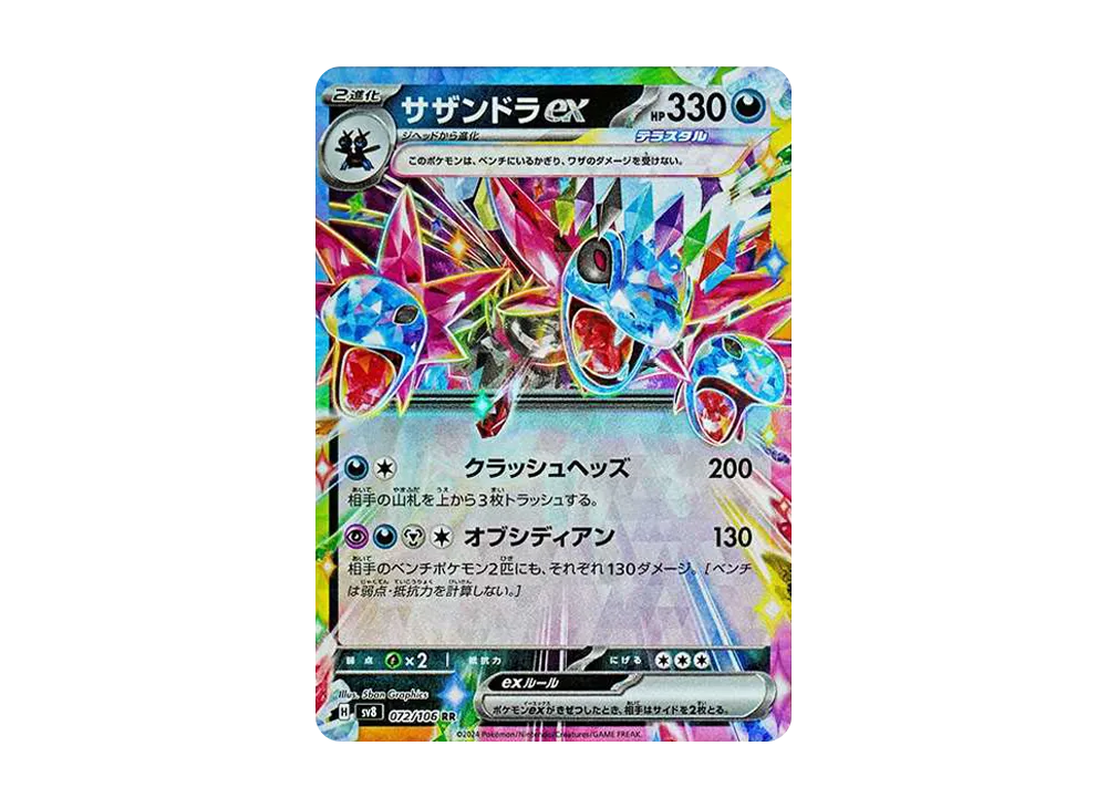 宝石のような"テラスタル"姿のきらびやかさと、「サザンドラ」の禍々しい迫力が見事に表現された魅力的なイラストが発売前から話題になっていた。現在も相場から目が離せない一枚になっている。
