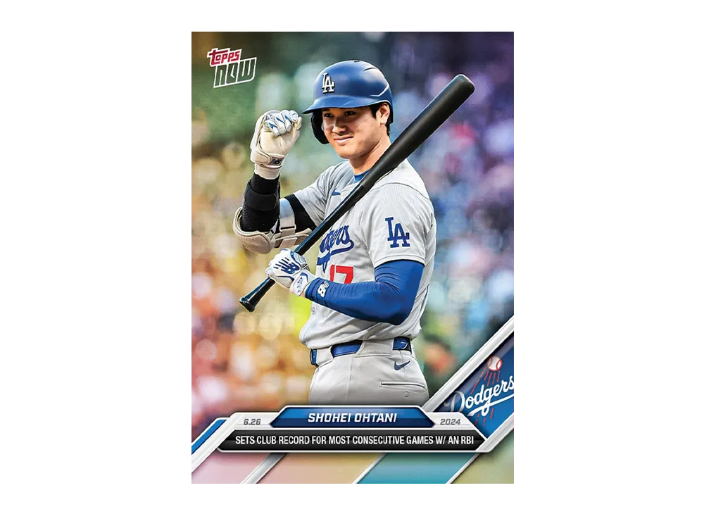 本カードは、「大谷翔平選手」が2024年8月23日に達成した史上6人目となる「40-40」(フォーティ・フォーティ)を記念し、「Topps NOW」から8月25日に24時間限定で販売された非常に希少価値の高い1枚。
