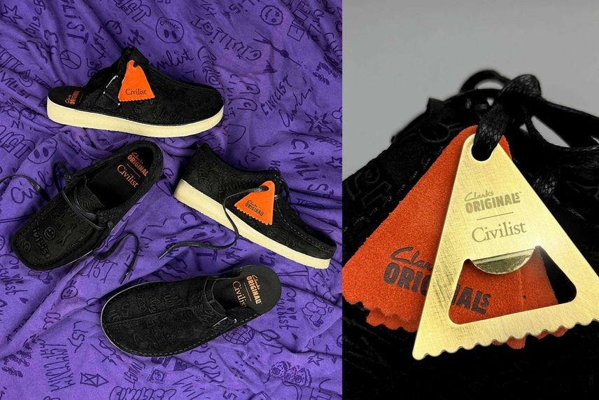 ストリートウェアブランド「エクストララージ」と「クラークス」がタッグを組み、コラボシューズをリリースする。今回は、クラークスの名作「ワラビー」をベースに、レオパード柄のファー素材をアッパーに取り付けてカスタムできるというユニークな一足が登場。本体にはレオパード柄のピスネームや、フォブにゴリラロゴのレザータグが付属しており、ファーを取り付けずともエクストララージらしいストリートなデザインを楽しむことができる。オーセンティックなシューズに、ストリートブランドの遊び心を加えたコラボモデルは、この冬のスタイリングのアクセントとして大活躍してくれそうだ。