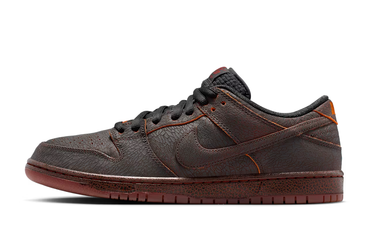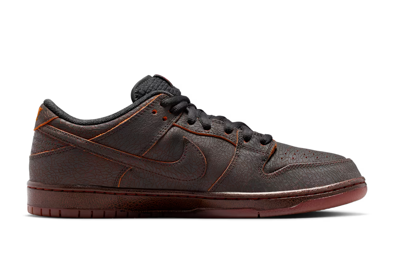 「ナイキ」のSB ダンクから、聖ニコラスの対極に位置する伝説の怪物クランプスをテーマにした新作が登場する。アッパーは、ひび割れ加工が施されたレザーで構築されているが、これは単なるデザインではない。スケートや着用による摩耗で表面が剥がれ落ちると、下層から燃えるようなオレンジ色が露出するギミックが隠されており、まるで地獄の業火が顔を出すような演出が施されているのだ。不気味な赤のステッチワークに加え、シュータンにはクランプスが子供をさらう際に使う「カゴ」を模したウーブン素材を採用。さらに、インソールの表面には石炭のグラフィックが、そしてZoom Airユニットの裏側には「悪い子リスト」が密かに記されるなど、見えない部分まで徹底したこだわりが見て取れる。伝説の怪物を足元に宿し、他とは一線を画す存在感を放つ一足に注目してみてほしい。