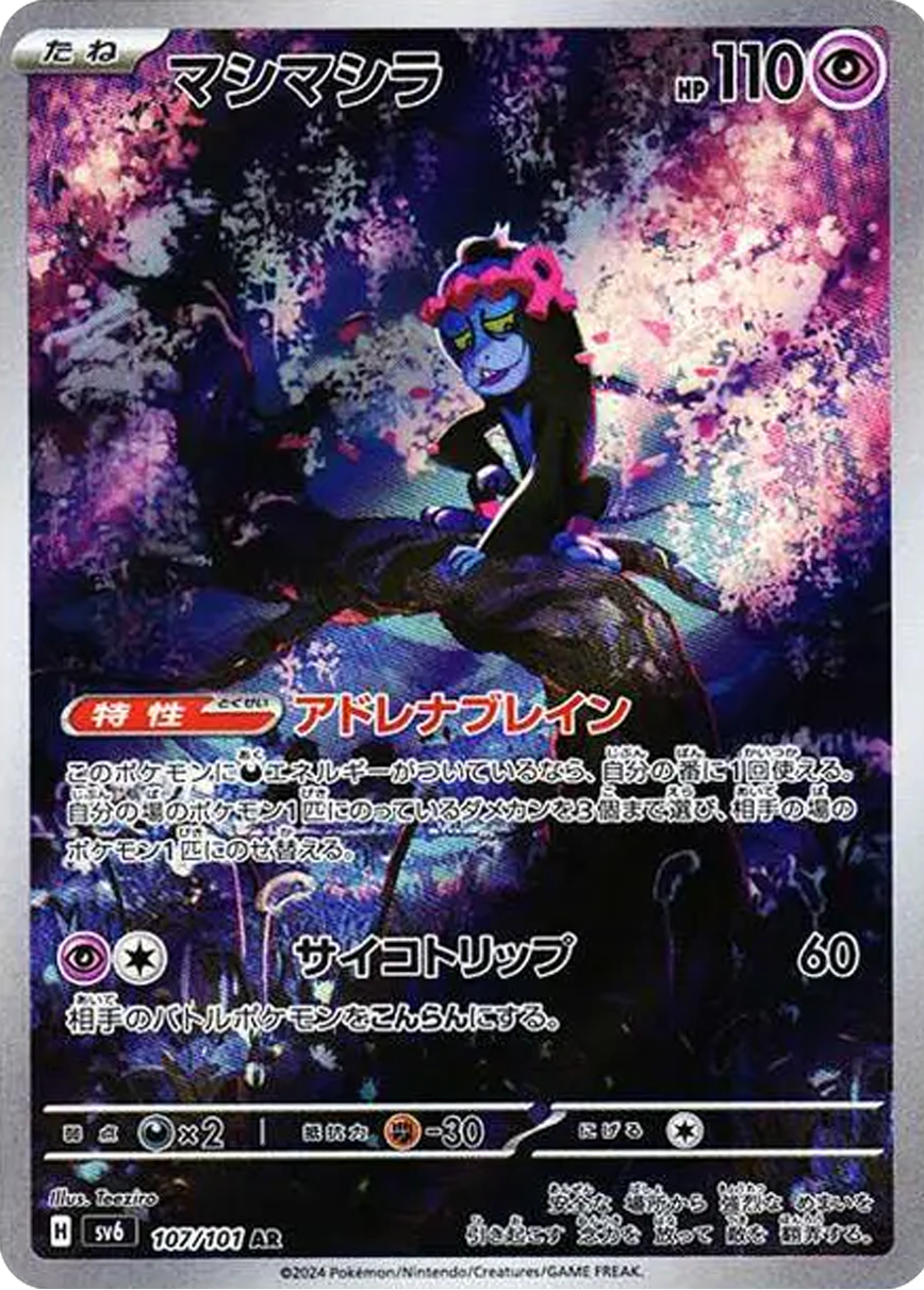 特性〈アドレナブレイン〉を持つ「マシマシラ」は、「メガディアンシーex」の高耐久を活かした新たな戦術を展開できることが採用理由になっている。ダメカンを相手のポケモンに移し替えることで、絶妙なダメージ調整が可能であり、「サーナイトex」の「サイコエンブレイス」で乗ったダメカンを相手に押し付ける戦法をとることができる。サイドレースを有利に進めることができる高耐久デッキならではの戦略を取ることが可能だ。