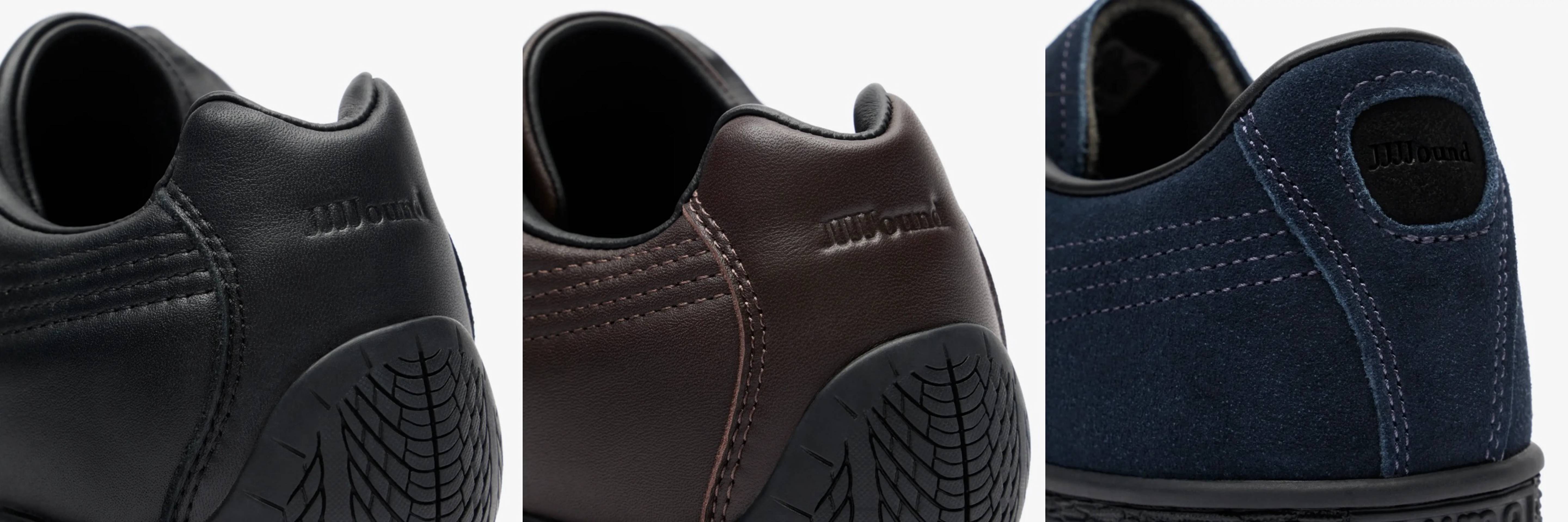 いずれのモデルも、サイドのフォームストリップはステッチのみで表現し、ブランドロゴはデボス加工で控えめに配置。素材本来の上質な質感を最大限に引き出す、ジョウンドならではのミニマルなアプローチが光っている。