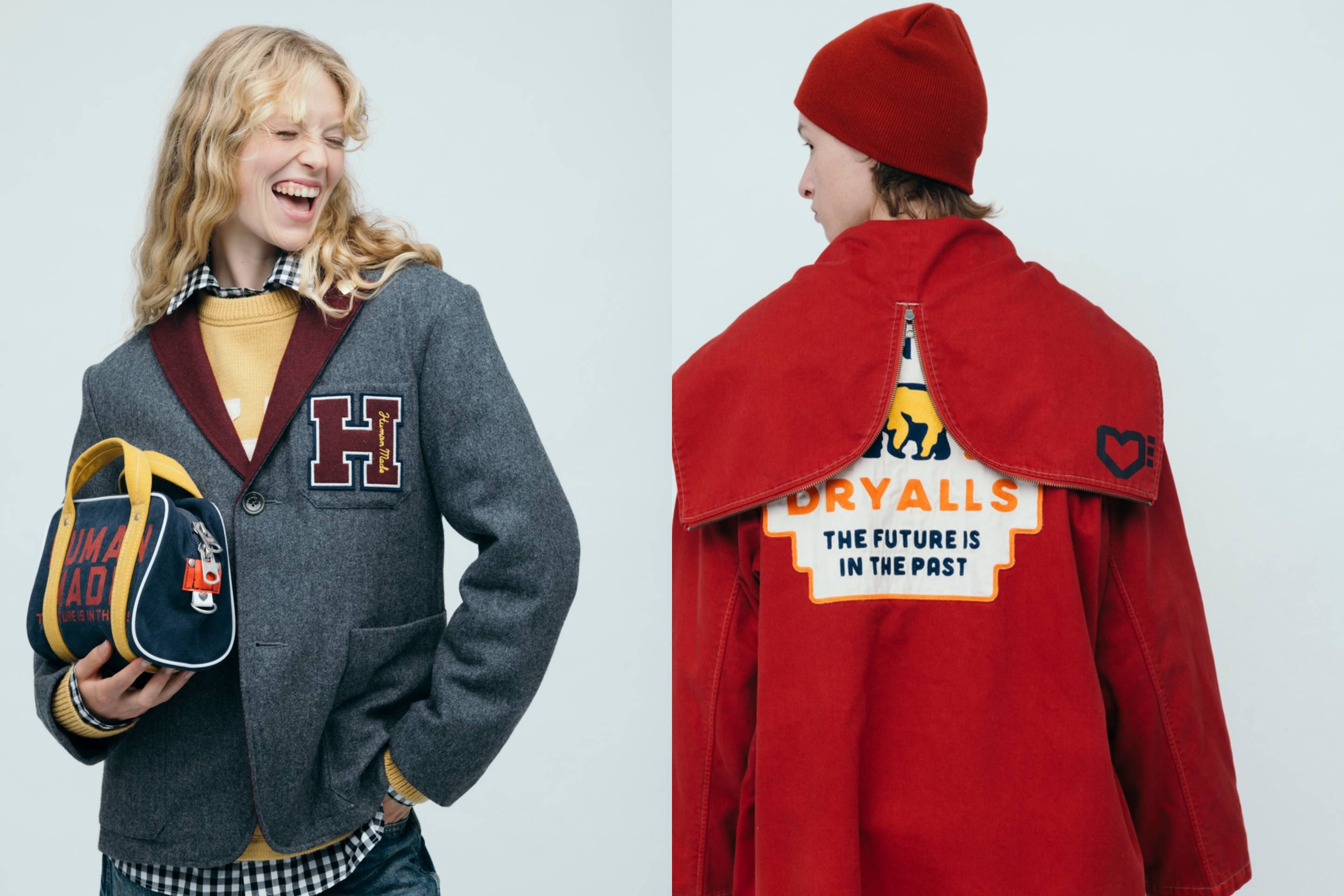 ニゴー氏が手掛けるブランド「ヒューマンメイド」より、2025年秋冬コレクションの新作が登場する。今回のドロップで特に注目したいのは、襟の切り替えとワッペンがアクセントになったカレッジ風のウールジャケットと、フードのジップを開くとセーラーカラーになるユニークな仕様のフーデッドコートだ。その他にも、ヒューマンメイドのアイコニックなハートロゴが胸元に施されたスウェットシャツやロングスリーブTシャツ、スポーツニット、ヴィンテージライクなボストンバッグ、カセット型のポータブルスピーカーなど、多彩なアイテムが展開される。これからの季節に即戦力となるアイテムばかりなのでぜひチェックしてほしい。