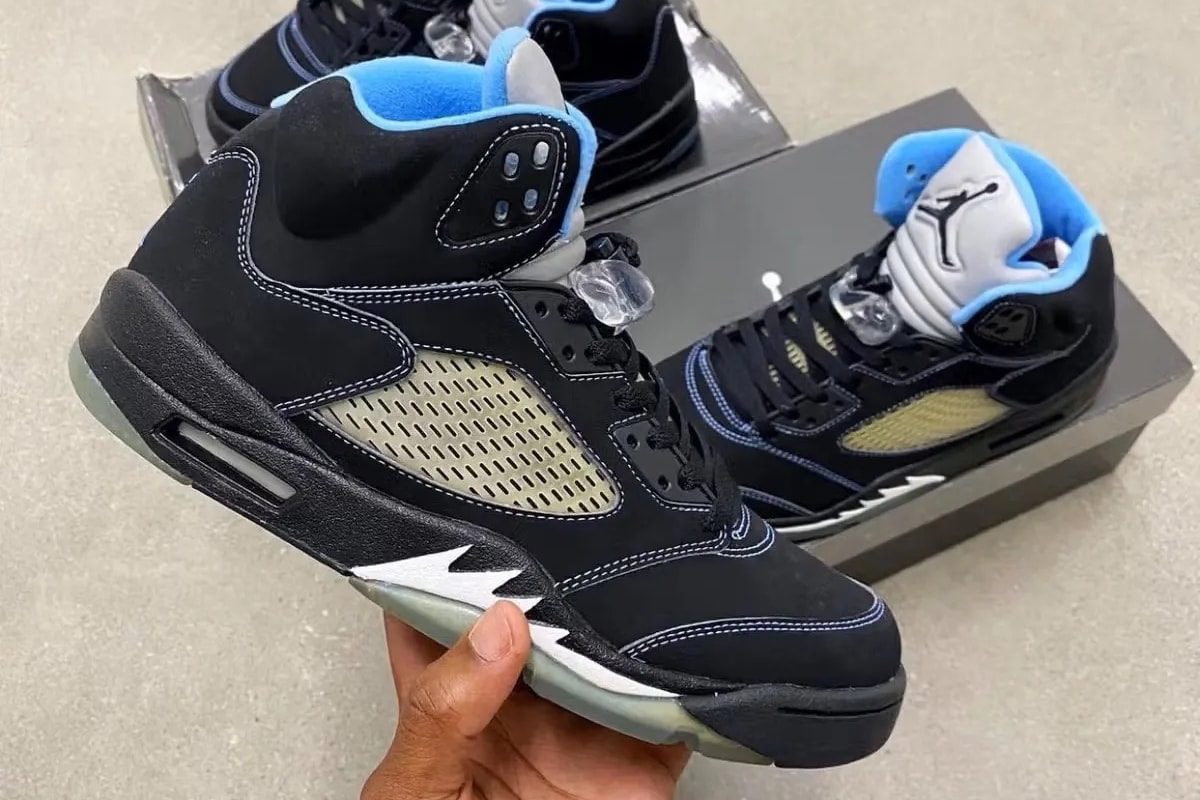 ジョーダンブランドより、2006年にライフスタイルLSモデルとして発売され、人気を博したエアジョーダン5 レトロ "ブラック/ユニバーシティブルー"が約20年ぶりに復刻するようだ。今作は、マイケル・ジョーダン氏の母校であるノースカロライナ大学を彷彿とさせるカラーリングが特徴。アッパー全体は上質なブラックのヌバックで構成され、ミッドソールやライナー、アウトソールのジャンプマンロゴには鮮やかなユニバーシティブルーのアクセントが効いている。また、OGのディテールを踏襲し、サイドパネルのネットや、3Mリフレクティブ素材を使用したオーバーサイズのシュータン、炎をモチーフにしたシャークトゥースのミッドソールも健在だ。気になる一足だが詳細は不明のため、続報を待とう。