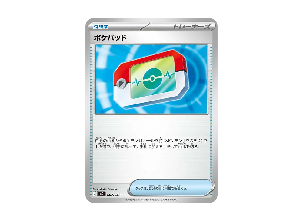 今回収録の「ポケパッド」は、2026年1月23日からレギュレーション落ちする「ネストボール」に代わる汎用カードとしてプレイヤーから注目を集めており、2026年1月23日発売の「ムニキスゼロ」へ再録が決まってもなお、300円近い販売価格となっている。