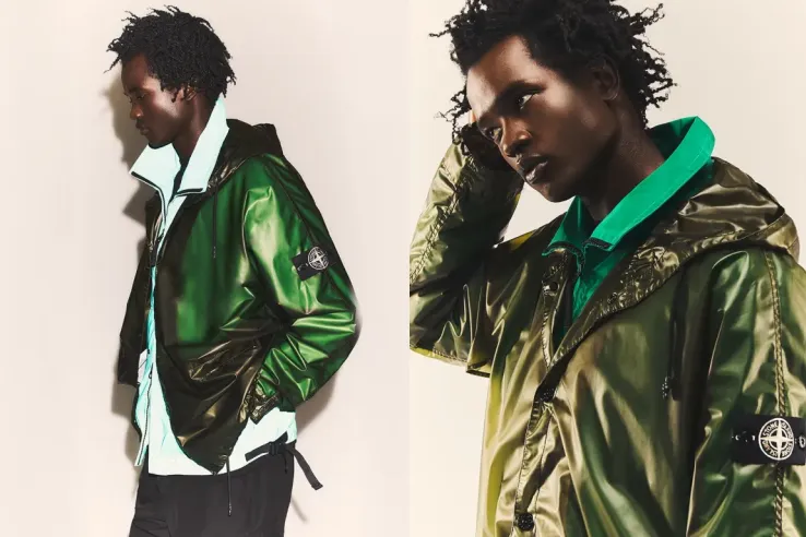 英国発の人気セレクトショップ「エンド」と、「ストーンアイランド」によるコラボレーションジャケットが登場する。今回は、「エンド」の設立20周年を記念し、20周年の贈答品にしばしば用いられる希少な宝石の色、エメラルドグリーンをキーカラーに採用。最大の特徴は、半透明で防風性のある「Traslucent Cover-TC」のアウターレイヤーと、高い反射性を誇る「Plated Reflective」のデタッチャブルライナーから構成されるテクニカルなブレンド仕様だ。ライナーには、数千ものガラス微細球体を組み込んだレジンバスでコーティングされた反射性素材が用いられ、アウター越しに下層の色を歪ませることでダイナミックな表情を生み出している。さらに左袖には、通常は稀にしか見られない白ステッチのバッジを装備。まさに「エンド」の20年の歴史を祝うにふさわしい特別な一着と言えるだろう。