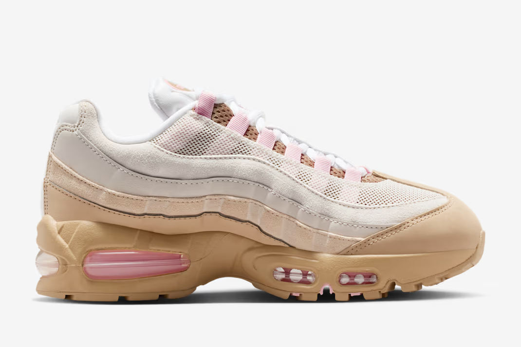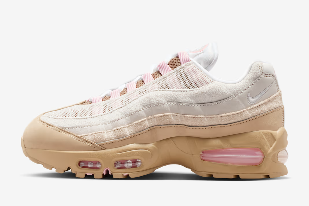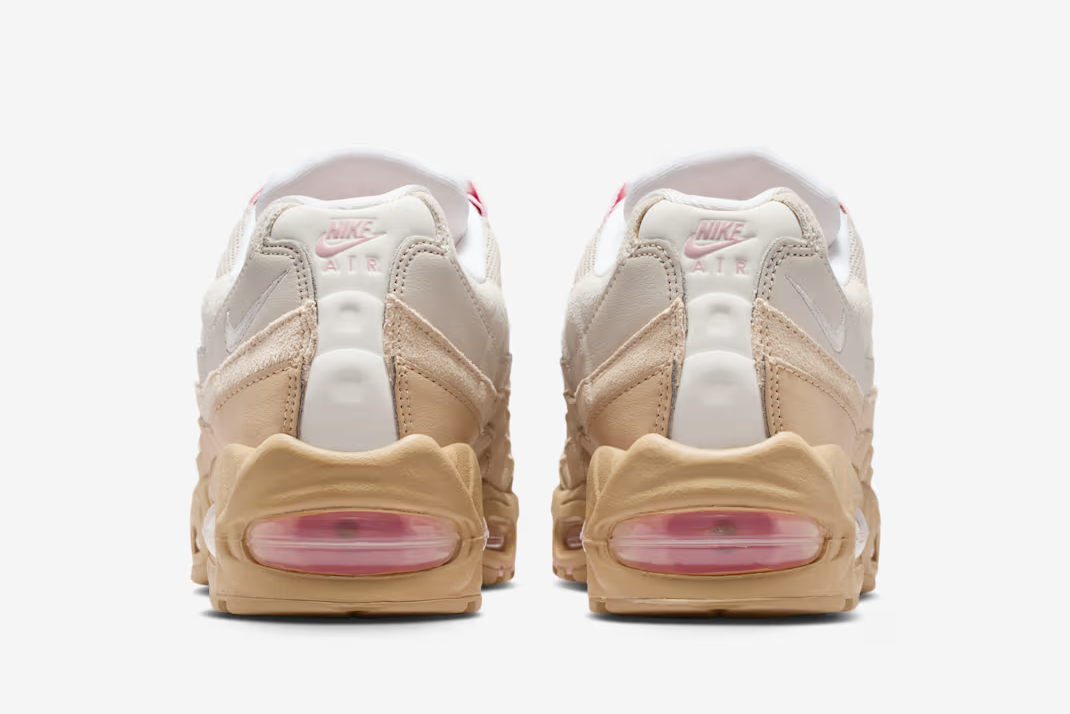 「ナイキ」の傑作「エアマックス95」より、過去にリリースされた「Air Force 1 Low "Linen" (エアフォース1 ロー "リネン")」からインスピレーションを得た新色が登場する。「エアフォース1 ロー "リネン"」は2001年に日本限定で発売されたモデルであり、その希少性からファンの間で伝説的な地位を確立しているモデルだ。今作では、オリジナルの"リネン"が持つ柔らかいニュートラルカラーの魅力を継承しつつ、より暖かみのあるトーンで再解釈されている。レザーとスウェードが重なった複雑なテクスチャーに加え、全体的なブラウンの配色に対する差し色のミディアムソフトピンクのコントラストが、全体の上品な雰囲気を引き締めている。「エアマックス95」の特徴である多層構造のデザインと、伝説的なカラーパレットが見事に融合したこの一足は、日々のコーディネートを格上げしてくれること間違いなしだろう。