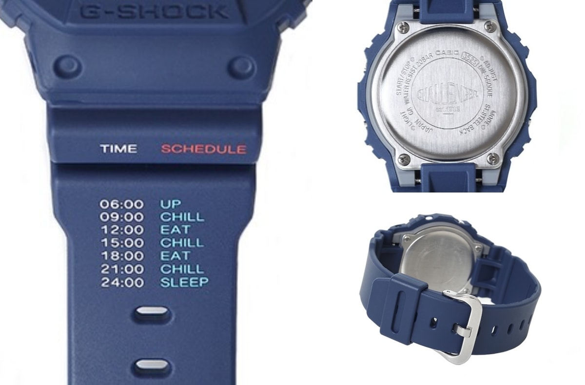 ストリートシーンで絶大な支持を集める「チャレンジャー」より、カシオが世界に誇る「ジーショック」との最新コラボモデルが登場する。スピードモデルとして名高いDW-5600を採用し、今作はブランド設立15周年を越え、新たな歩みを進める同ブランドのアイデンティティを注ぎ込んだ。最大のポイントは、樹脂バンドにブランドコンセプトである"YOU HAVE YOUR OWN SPEED"に基づいた独自のタイムスケジュールをプリントしている点。液晶周りの文字盤面にはCHALLENGERのロゴを配し、バックライト点灯時にはブランドを象徴するグラフィックが浮かび上がる仕様だ。耐衝撃構造や20気圧防水といったジーショックの基本性能はそのままに、ストリート感を色濃く融合。デイリーにもコレクションにも刺さる一本となっている。