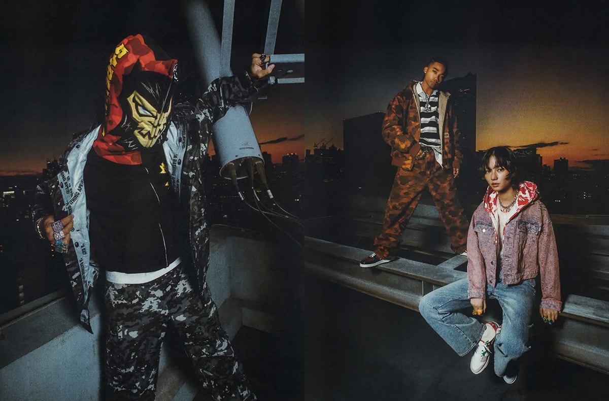 アイテムラインナップも、OGバーシティジャケットの復刻や、メッシュ素材のアイパネルを備えた新キャラクター「BAPEMAN-X」のフルジップフーディーなど、伝統と未来的な要素が混在。ベイプが提示する"今"のスタイルに注目しよう。