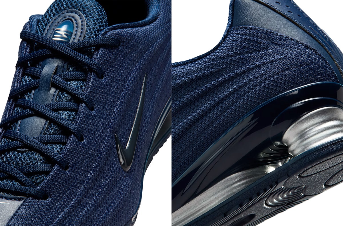 唯一無二の履き心地と存在感を演出する「コラム」と呼ばれるソール部の円柱パーツは健在だ。今回の新色は深みのあるミッドナイトネイビーをベースに、メタリックシルバーでアレンジ。周りと被らないショックスを探しているのであれば、ぴったりの一足となるだろう。