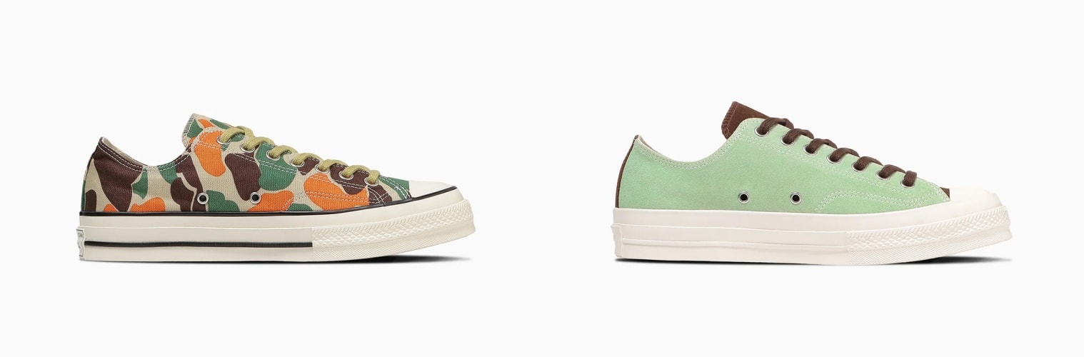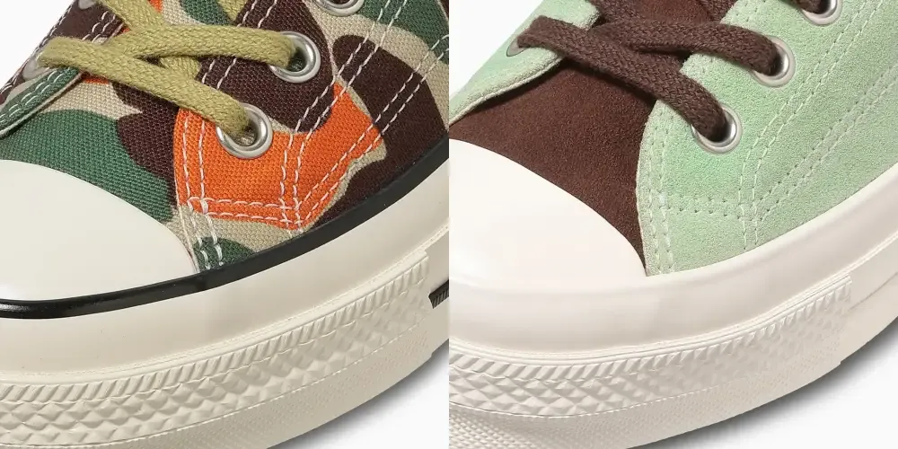 今作は2カラーで展開される。「83カモ」のアッパーには、オリジナルにはない鮮やかなオレンジを差し色として採用し、Goro氏らしいポップな配色へと昇華。もう一方のモデルには、チョコミントを彷彿とさせるミントグリーンのスエード素材を用い、キャッチーなデザインとなっている。唯一無二の存在感を放つ今作を、コーディネートのアクセントとして手にとってみてはいかがだろうか。