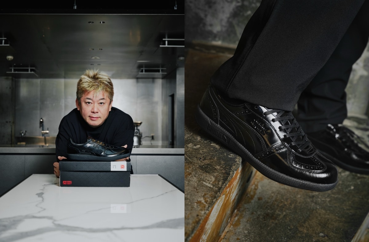 「プーマ」から、実業家である堀江貴文氏とシェフの浜田寿人氏が率いる「ワギュウマフィア」、そして日本を代表するショップ「アトモス」とのトリプルコラボモデルが登場。ベースに採用されたのは、1980年代のテラスカルチャーを象徴する名作「パレルモ」だ。今作は、姫路の職人が丹念に鞣した牛革ガラスレザーを使用したMADE IN JAPAN仕様。アッパーにはフルブローグの意匠を落とし込み、スニーカーでありながら革靴のような上品さを纏った仕上がりとなっている。インソールには鮮やかなレッドを配し、トリプルネームのゴールドロゴを刻印。細部まで特別感を追求したデザインだ。パレルモ特有のクローズド・トゥキャップ構造とガムソールはそのままに、耐久性と快適な履き心地も両立。世界限定500足という希少性も相まい、コレクターズアイテムとしての価値も十分。"履くための一皿"と称される、極上の一足をぜひチェックしてほしい。