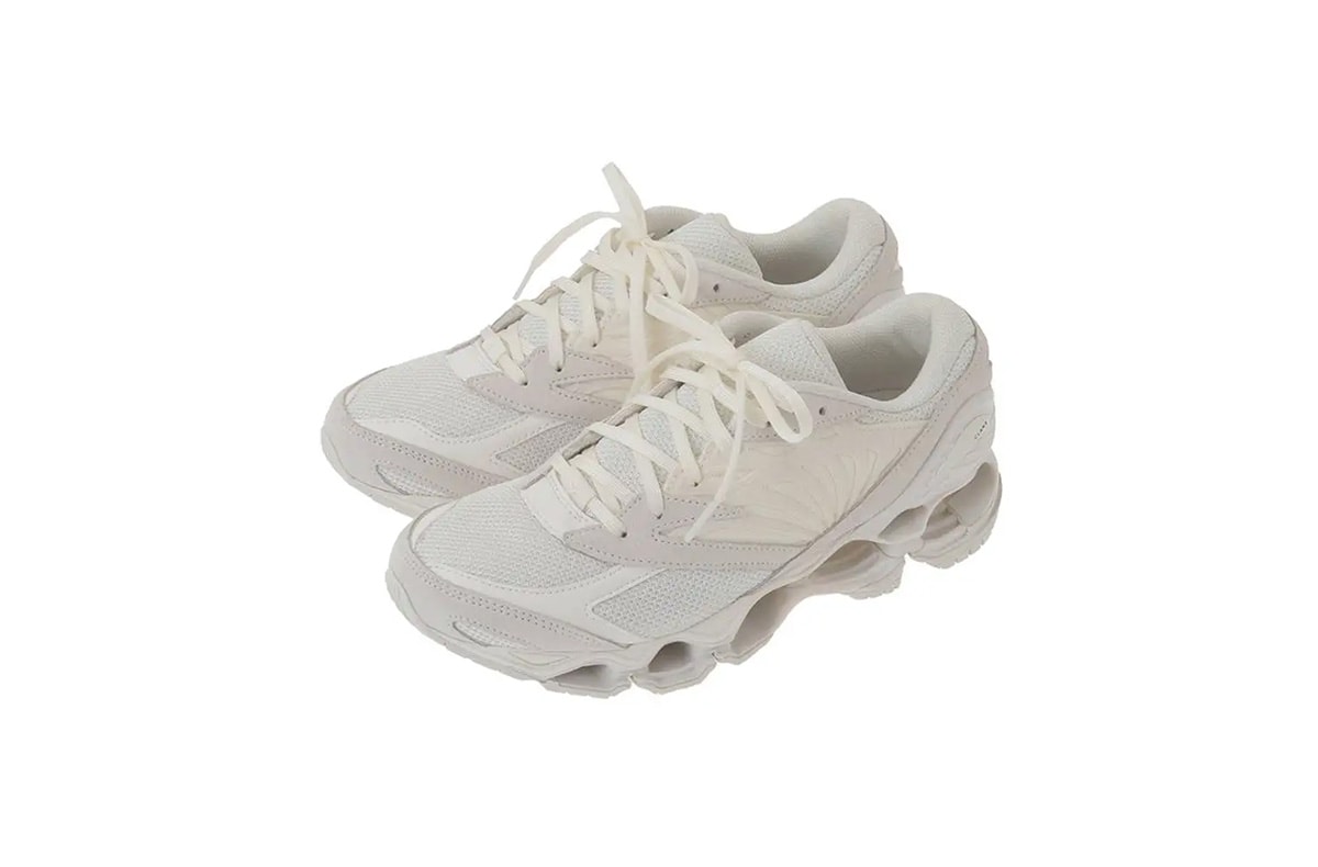 注目アイテムは、ミズノを代表するソールユニット「インフィニティウェーブ」を搭載したスニーカーWave Prophecy LS(ウェーブ プロフェシー LS)で、ホワイトのアッパーへ控えめに配したブラックのクラネロゴが、さりげないモードを感じさせる。