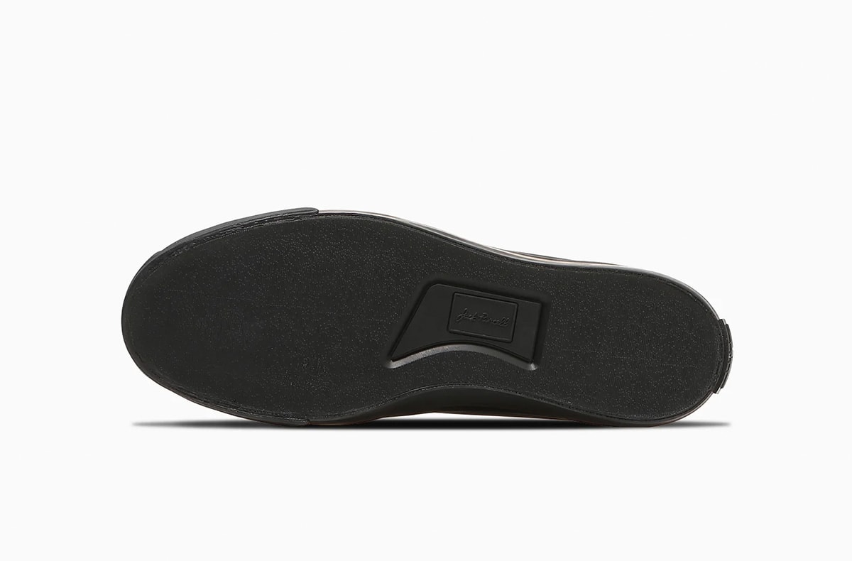 アッパーにブラックのレザーを使用した本作は、モカ部分を手縫いにすることでパイピングのラインも美しく仕上げている。つま先のスマイルやヒールラベルのヒゲといったジャックパーセル特有の意匠はそのままに、アイコニックかつドレッシーな佇まいだ。