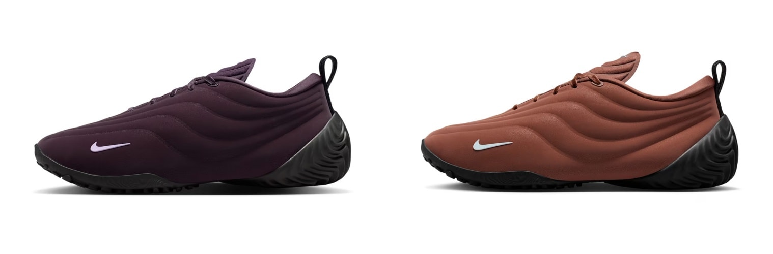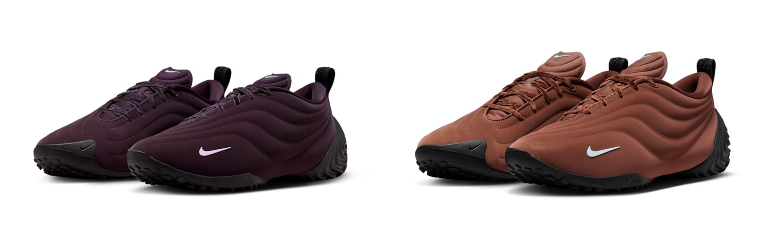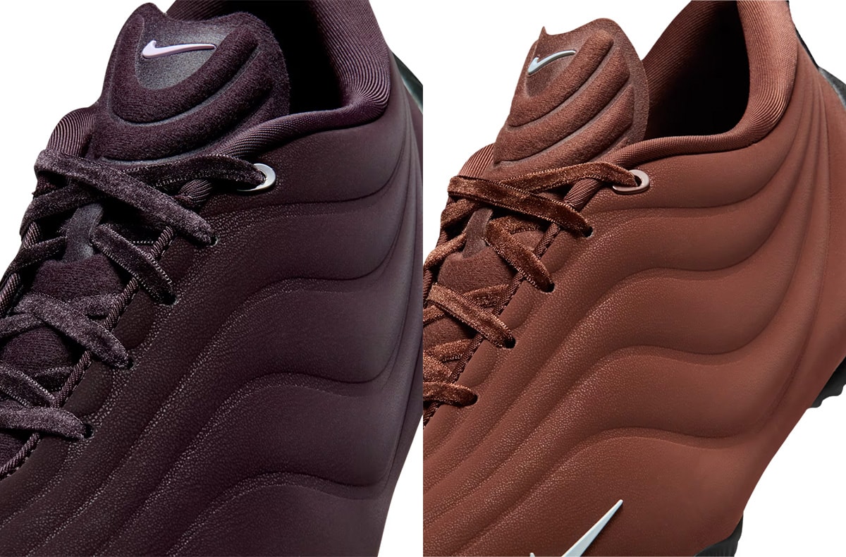 波状のステッチを施したキルティング加工のアッパーがシャープさと柔らかな履き心地を実現。サッカーシューズから着想を得たアシンメトリーなシューレースも特徴的だ。 今作は、ブラウンとバーガンディを基調に、随所へブラックのアクセントが効いており、2色とも落ち着いた仕上がりとなっている。最新のテクノロジーが詰まった一足にぜひ注目してほしい。