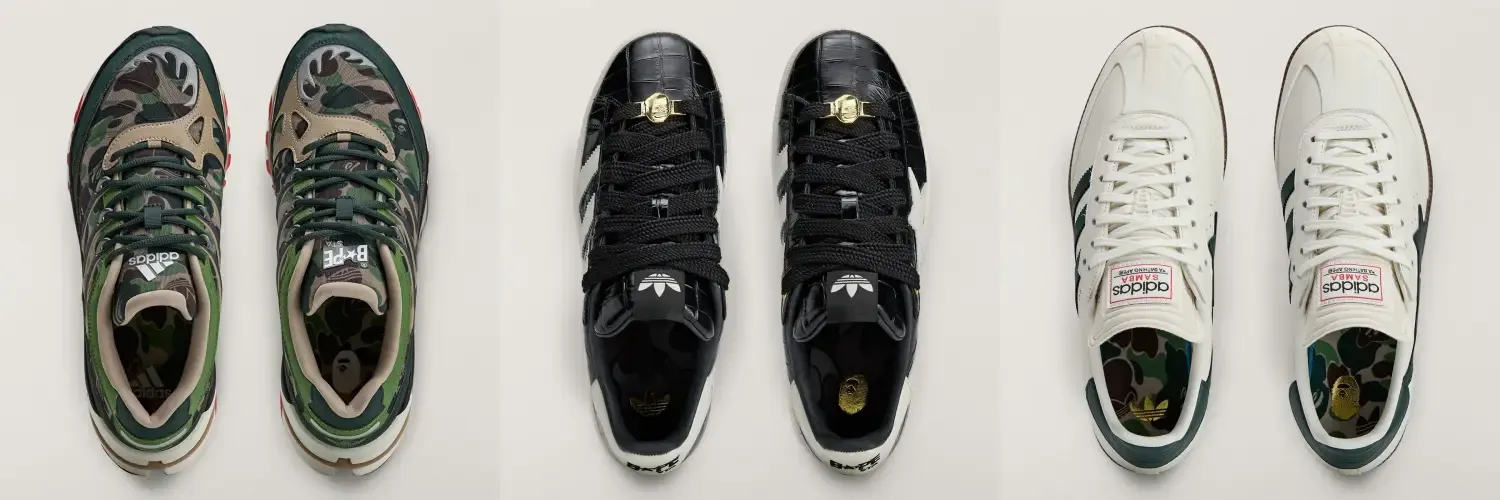 「アディダス」と「ア ベイシング エイプ」より、2026年FIFAワールドカップの開催を祝したコレクションが登場する。ベースにはサンバ、キャンパス00s、アディスター HRMYという、新旧のストリートシーンを象徴する3足がラインナップ。