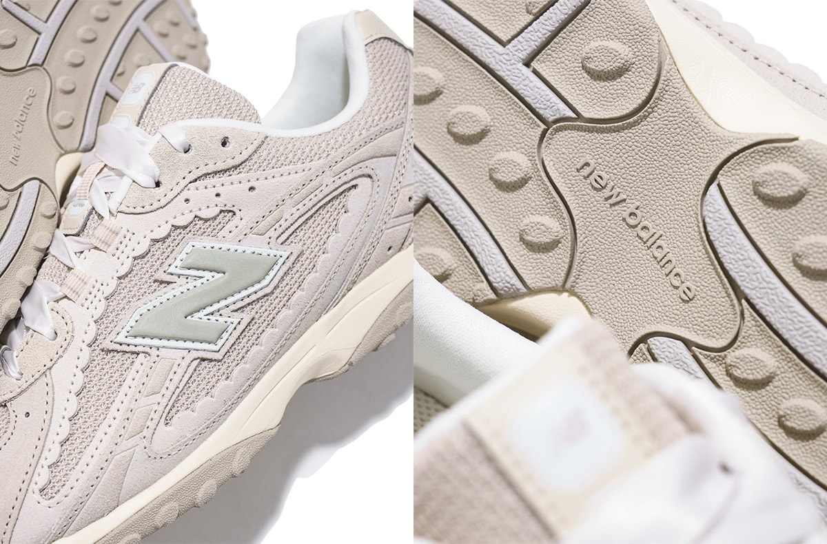 今作は、全体を柔らかなベージュやアイボリーのトーンで統一し、質感豊かなスウェードとメッシュのコンビネーションが奥行きのある洗練された表情を演出。また、パーツの縁にあしらわれたフリル状のアンダーレイと、光沢感のあるリボンシューレースによる装飾的なディティールも特徴だ。ニューバランスの新たな一面を垣間見せるデコラティブな新作を、ぜひ手にとってみては。