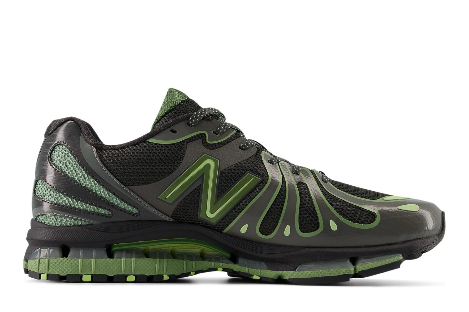 「ニューバランス」から、過去の名作を掛け合わせて誕生した最新モデル「1890」が登場する。本作は、2011年に登場した軽量ランニングシューズ「890 V3」のアッパーデザインと、2010年に米国製モデルとしてリリースされた「MR2002」のソールユニットを融合したハイブリッド仕様の一足。波状のカットアウトが特徴的なアッパーにはメッシュと合成素材を組み合わせ、Y2Kムード漂うメカニカルなルックスに仕上げられている。カラーはブラックをベースに、鮮やかなグリーンアクセントをプラス。テック感の強いサイバーパンクな表情が、足元で存在感を放つ。ソールにはN-ERGY(エナジー)とABZORB(アブゾーブ)をフルレングスで搭載し、Stability Web(スタビリティウェブ)がアーチをサポート。優れたクッション性と安定感を兼ね備え、パフォーマンスとデザイン性を高次元で両立している。ハイテクランニングのDNAを現代的に再構築した、見逃せないモデルだ。