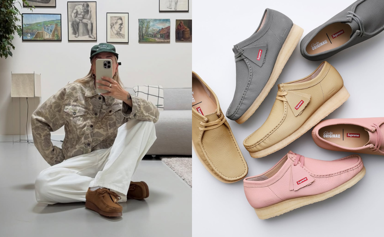 このシューズをカルチャーに根付かせたのは音楽だった。90年代、Wu-Tang Clan(ウータンクラン)がワラビーを履いてNYシーンに登場し、メンバーたちの愛用ぶりがそのままストリートに伝播していった。その流れを受け止めるように、ストリートブランドとのコラボレーションが加速していく。代表的なタッグは、Supreme(シュプリーム)。素材やデザインを毎回刷新しながらドロップのたびに即完を繰り返し、昨今も新作をリリースしている。定番でありながら、常に新鮮でいられる理由だ。
