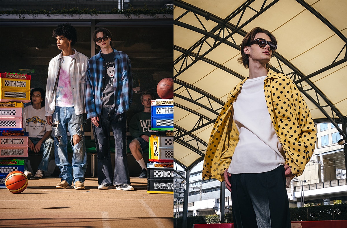 さらに「ベルベルジン」の藤原裕氏とのデニムプロジェクトでは、大戦モデルをベースに生地を一から開発し、Tバック仕様のジャケットやリベット、ボタンなど細部まで再現したセットアップも発売する。その他、鮮やかなスカイブルーのレーヨンチェックシャツ、I LOVE SAINTのグラフィックを配したスウェットショーツなど、インラインも充実している。ヴィンテージへの深い造詣と現代的な感性が見事に融合した最新コレクションを、ぜひ手にとってみては 。
