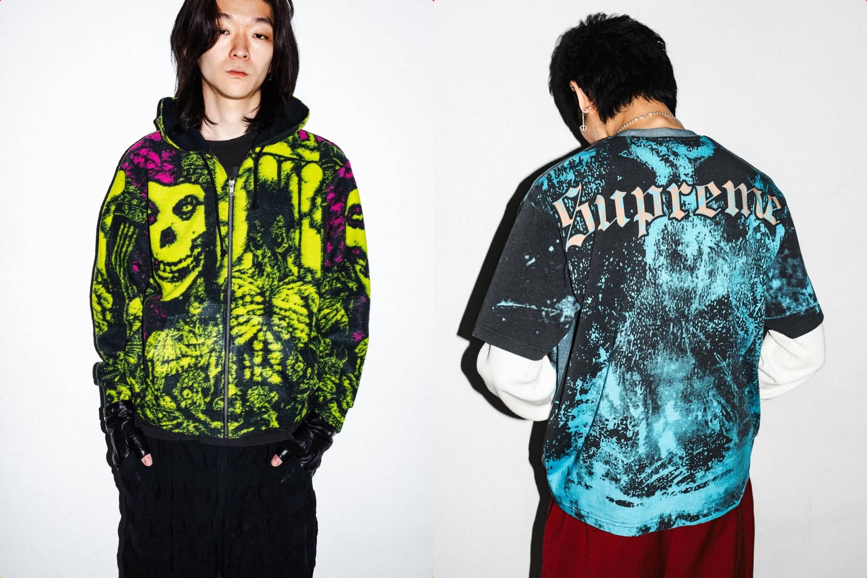 また、ド派手なグラフィックが目を引くワークジャケットやTシャツ、ホッケージャージー、セーターといったThe Misfitsとのコラボアイテムも同時展開。そのほか、漢字で「最高」と書かれたユニークなベースボールジャージや背中の十字架モチーフが印象的なバーシティジャケットなどがラインナップする。これから本格化する陽気なシーズンに向け、上がった気分をさらに上げるアイテムばかりなので、気になる人はリリースを忘れないようにしよう。