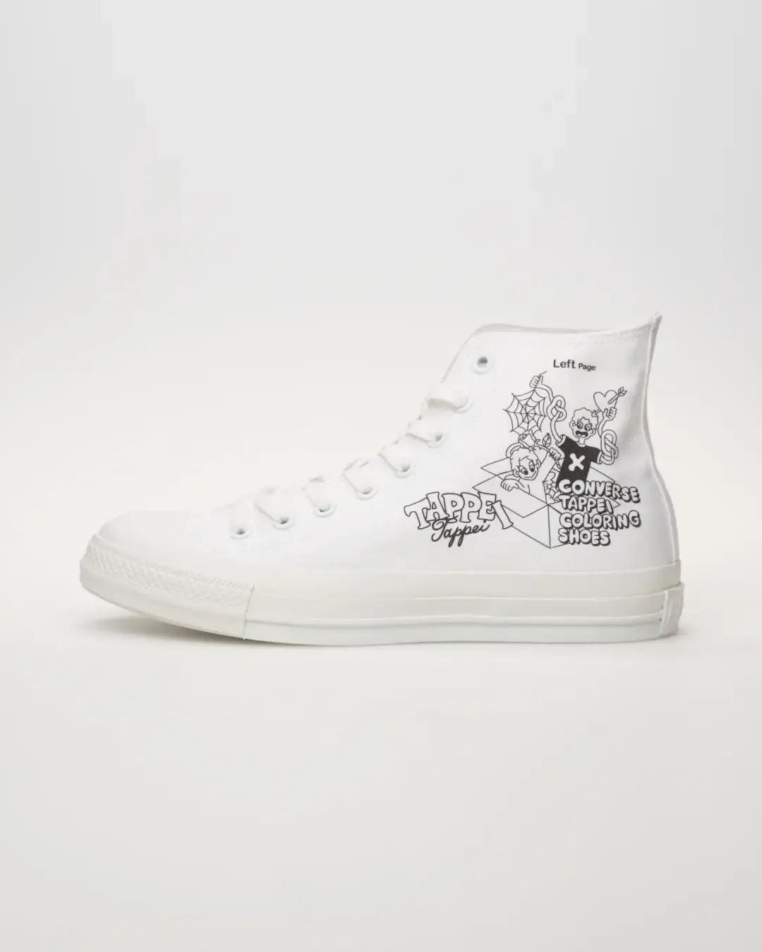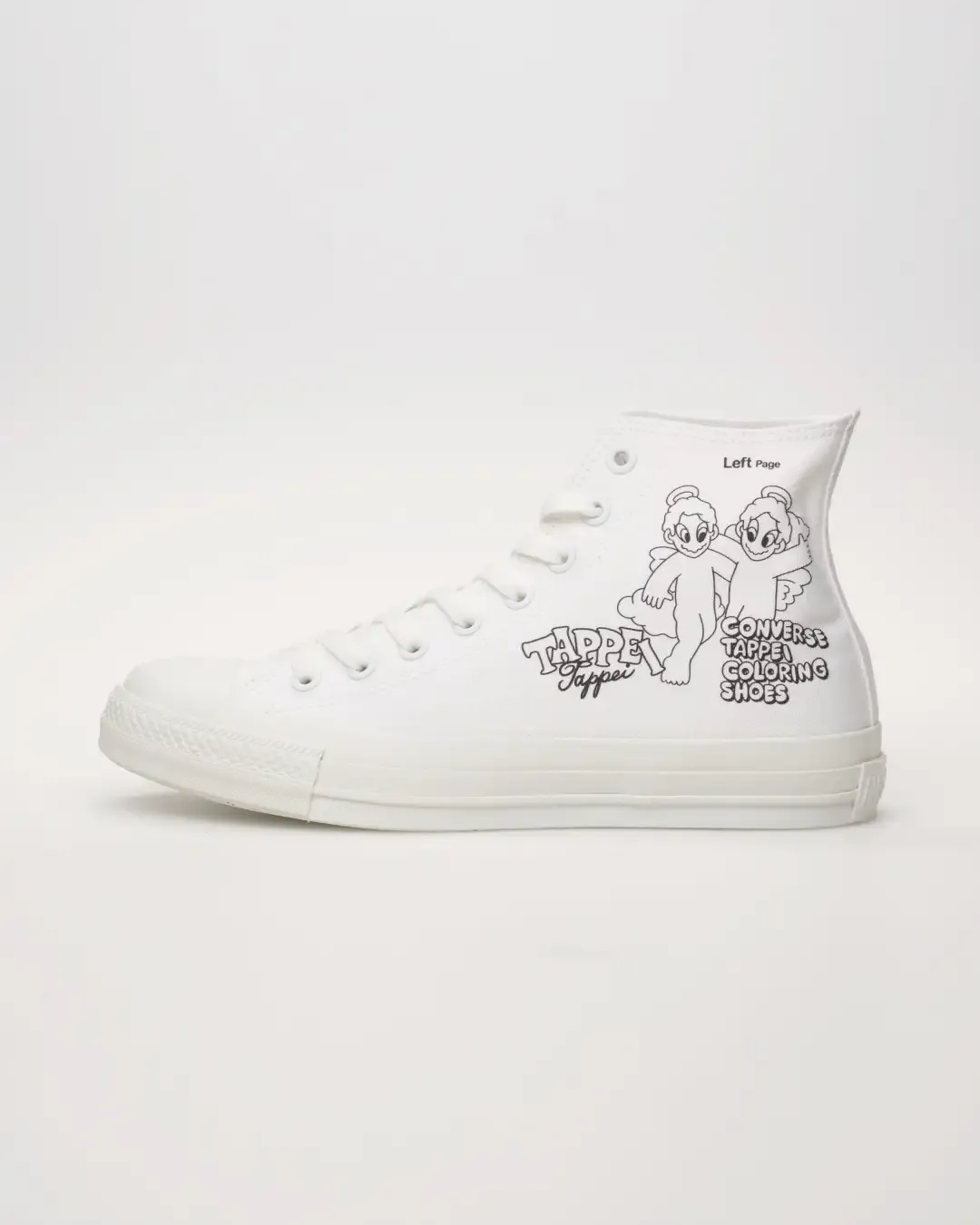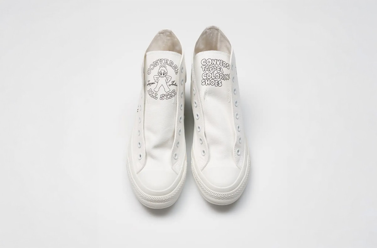 オールスターを自分好みにカスタムできるプリントサービスにタトゥーアーティスト、タッペイ氏とのコラボデザインが登場する。彼の代名詞である天使のキャラクターに塗り絵の要素を融合させたグラフィックとなっており、同氏が本企画のために描き下ろしたオリジナルデザインだ。左右のアッパーやシュータンにそれぞれ2種類のデザインがラインナップされており、異なるアートワークを自分好みに組み合わせられる。なお、本デザインはホワイトアトリエ バイ コンバース原宿点とオンラインストアのみでの展開だ。オリジナルノベルティも用意されているので、チェックしてみては。