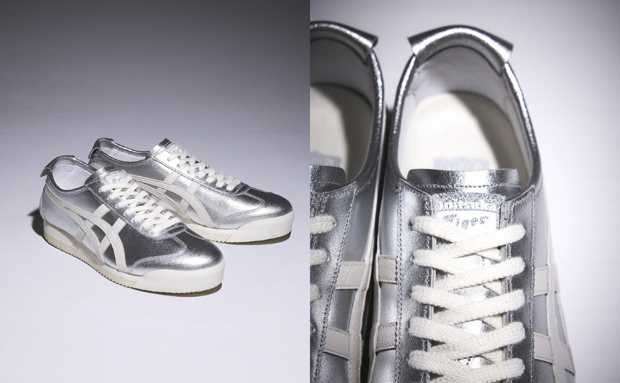 じわじわと女性人気が高まっているシルバーカラーのメキシコ66。レザーアッパーに、品のある光沢が宿る。シルバーはどんなコーデにも馴染むとあって、一足あると重宝すること間違いなし。