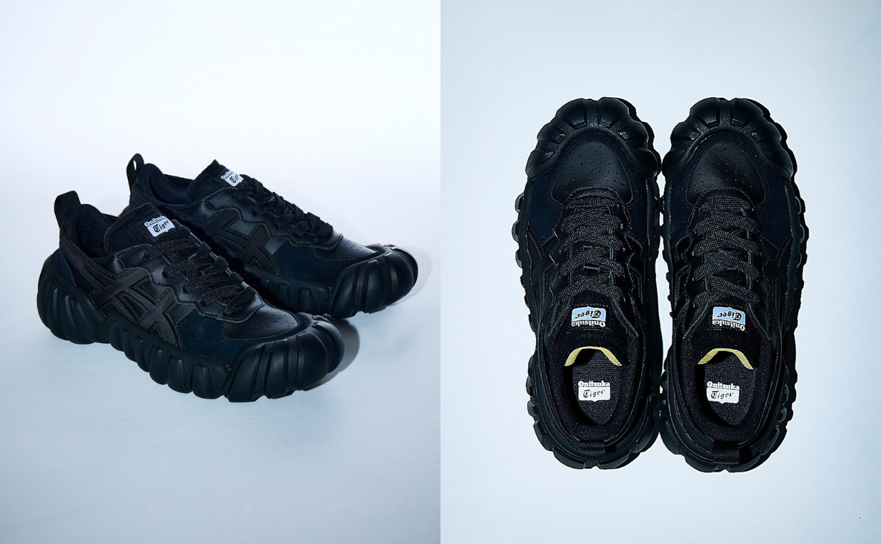 ボリューム感のあるソールが今っぽく、スニーカー好きの間でじわじわ注目を集めているモデル。オールブラックの潔い配色に、立体的なタイガーストライプとフェルト素材のシュータンが表情を添える。見た目のインパクトに負けない、履き心地も魅力だ。