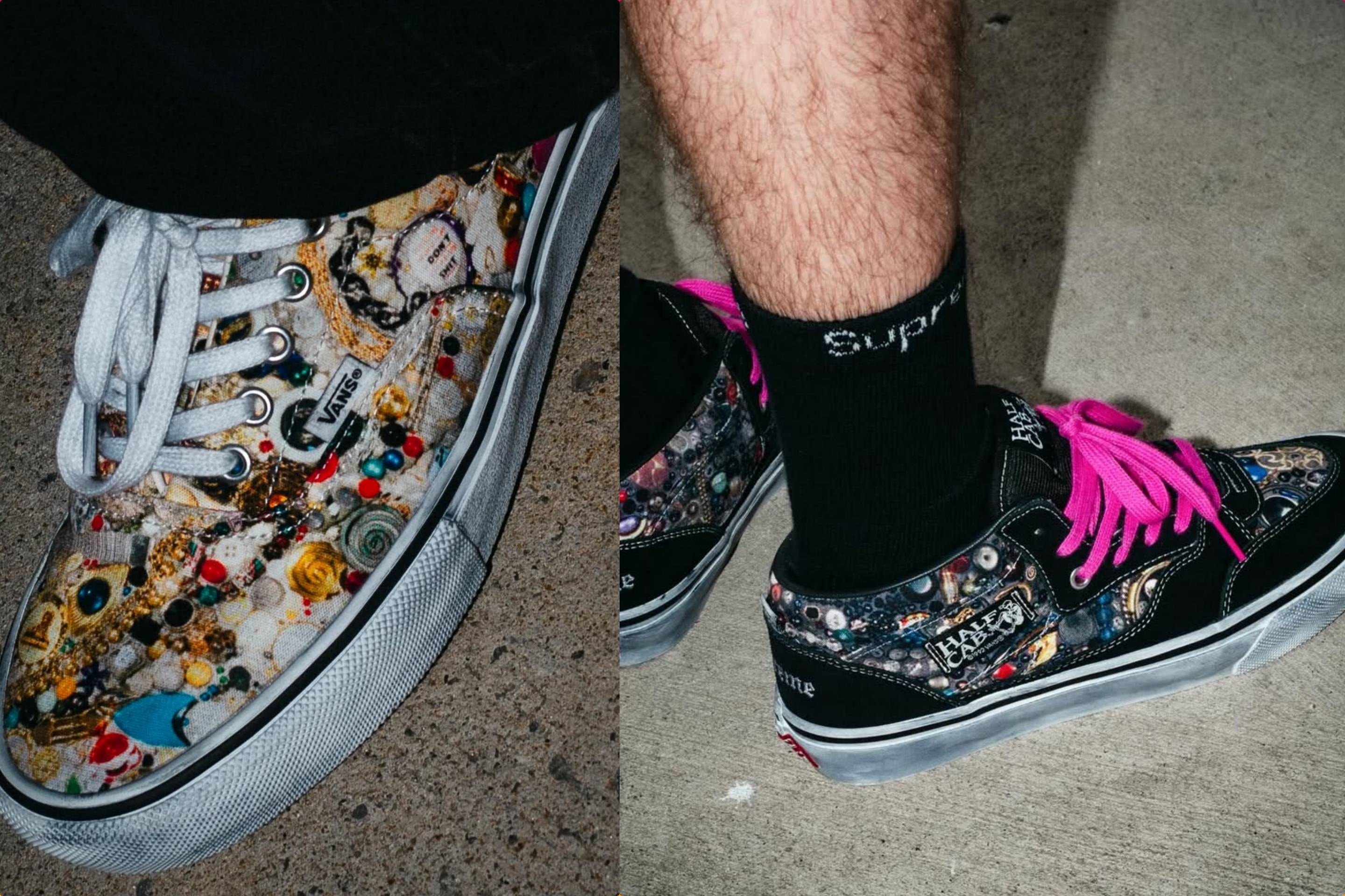 2026年4月18日、「シュプリーム」は「マイク・ケリー芸術財団」および「バンズ」とコラボし、故マイク・ケリー氏の象徴的なアートワークを落とし込んだ最新スニーカーを発売する。ベースに採用されたのは、スケートシーンの定番である「ハーフキャブ」と「エラ」の2モデルだ。デザイン面では、ハーフキャブがスウェードとキャンバスのコンビ素材でクラシックな芸術性を表現する一方、エラは全面キャンバスにアートをプリントしたインパクトのある一足となっている。いずれもインソールやヒールパッチに特別なブランディングが施された、コレクター垂涎の仕上がりだ。
