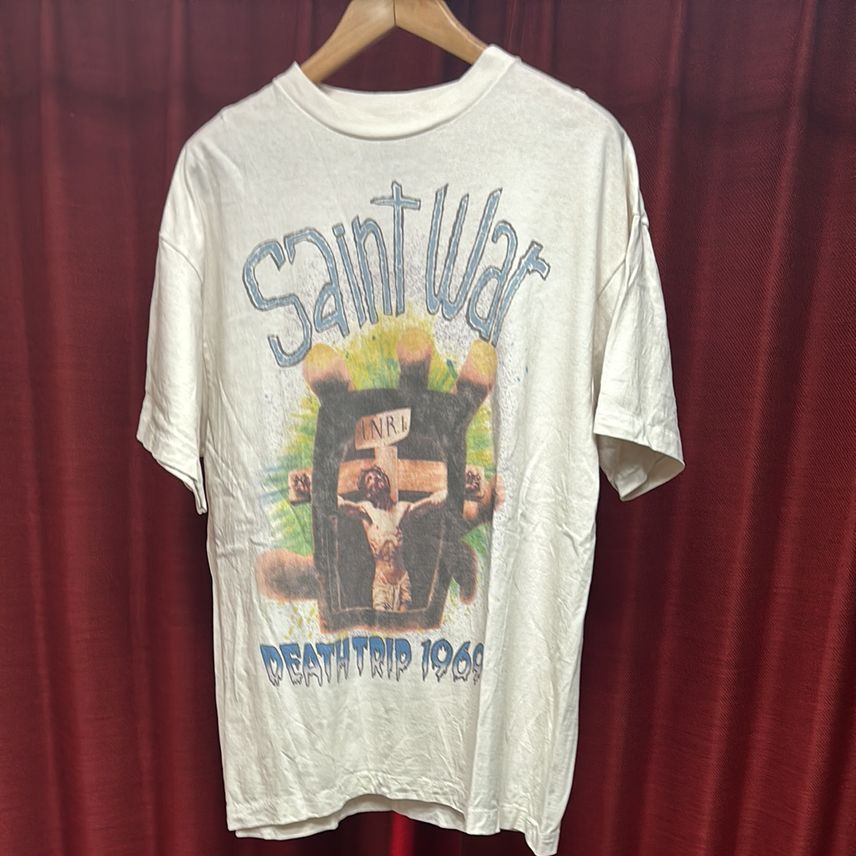 「READY MADE(レディメイド)」のデザイナー・細川雄太氏と、マルチビジュアルアーティストのカリ・ソーンヒル・デウィット氏が手掛ける「SAINT Mxxxxxx(セントマイケル)」。ヴィンテージウェアの持つ枯れた美しさを、現代の技術で再現し新たな価値を吹き込む同ブランドのTシャツは、今やストリートシーンのマスターピースと言って差し支えないだろう。今回は、即完売を繰り返すインラインの名作から、世界中のファンを熱狂させる豪華コラボレーションまで、スニダンで今こそ手に入れたい古着Tシャツ18枚をピックアップ。袖を通した瞬間に感じる、ヴィンテージTを凌駕する熱量を体感してほしい。