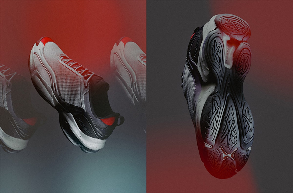 アッパーは軽量なメッシュとテキスタイルで構築され、洗練されたグレーに、赤、白、青のトリコロールカラーを随所に配置。ヒールには3つのDMXムービングエアブラッダー、前足部には反発性に優れたDMXコンフォート+フォームを搭載し、高いクッション性を提供する。さらに、インソールには三羽の鶴のグラフィックをプリントするなど、細部にまで独自のストーリーを詰め込んだ。実用的なギアとしての側面と高いデザイン性が融合したコラボモデルをチェックしてほしい。