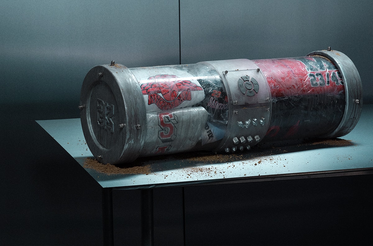「ジョーダン ブランド」から、「セントマイケル」とのコラボコレクションがリリースされる。本作は、マイケル・ジョーダン氏のレガシーを象徴するアイテムを「セントマイケル」のフィルターで再解釈したコレクションだ。"2026年4月に発掘されたタイムカプセルから、時を越えて回収されたアイテム"というストーリーに基づき、デザイナーの細川雄太氏が自身の青春時代である90年代の記憶を出発点に、現代のデッドストックを意識して制作。共同デザイナーのカリ・デウィット氏は、経験が時代ごとに再解釈される円のような時間を表現の核に据えたという。