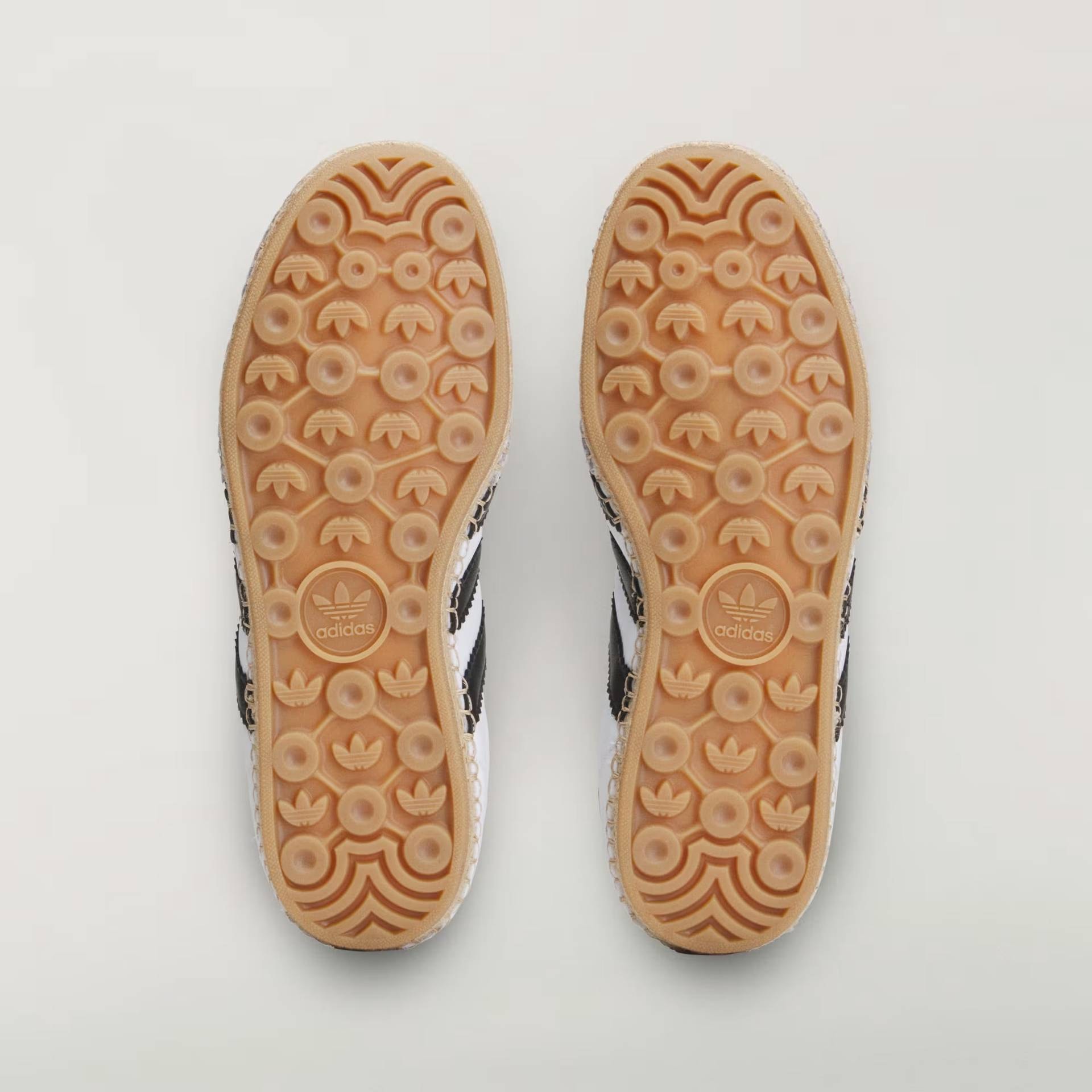 上質なレザーアッパーを使用したムンディアルは、側面のスリーストライプスにラフィア素材を採用。トゥ部にはクロットのロゴステッチをあしらいクラフト感あふれるデザインに仕上げた。一方のサンバは、スウェードのトゥキャップとスムースレザーのコントラストが洗練された表情を見せてくれる。また、両モデルともソールサイドにエスパドリーユ風の編み込みを施し、ラバーのアウトソールを搭載。コールドセメント構造による高い安定感が快適な歩行性を実現する。クラシックな雰囲気とスポーツスタイルが融合したコレクションをぜひ手に取ってみては。