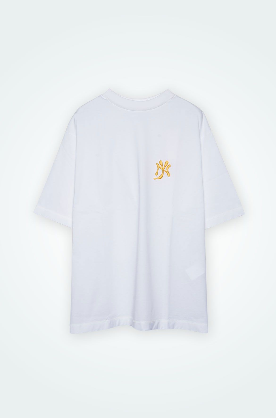 ワイドシルエットのボディに、所々表裏反対に縫製されていたり、タグが表に出ている等、クラシカルなスタイルをネオンサイン独自の解釈でデザインしたエクスクルーシブTシャツ。胸元にはマスタードソースを模して描かれた"NYロゴ"で、アイコニックなアクセントに。