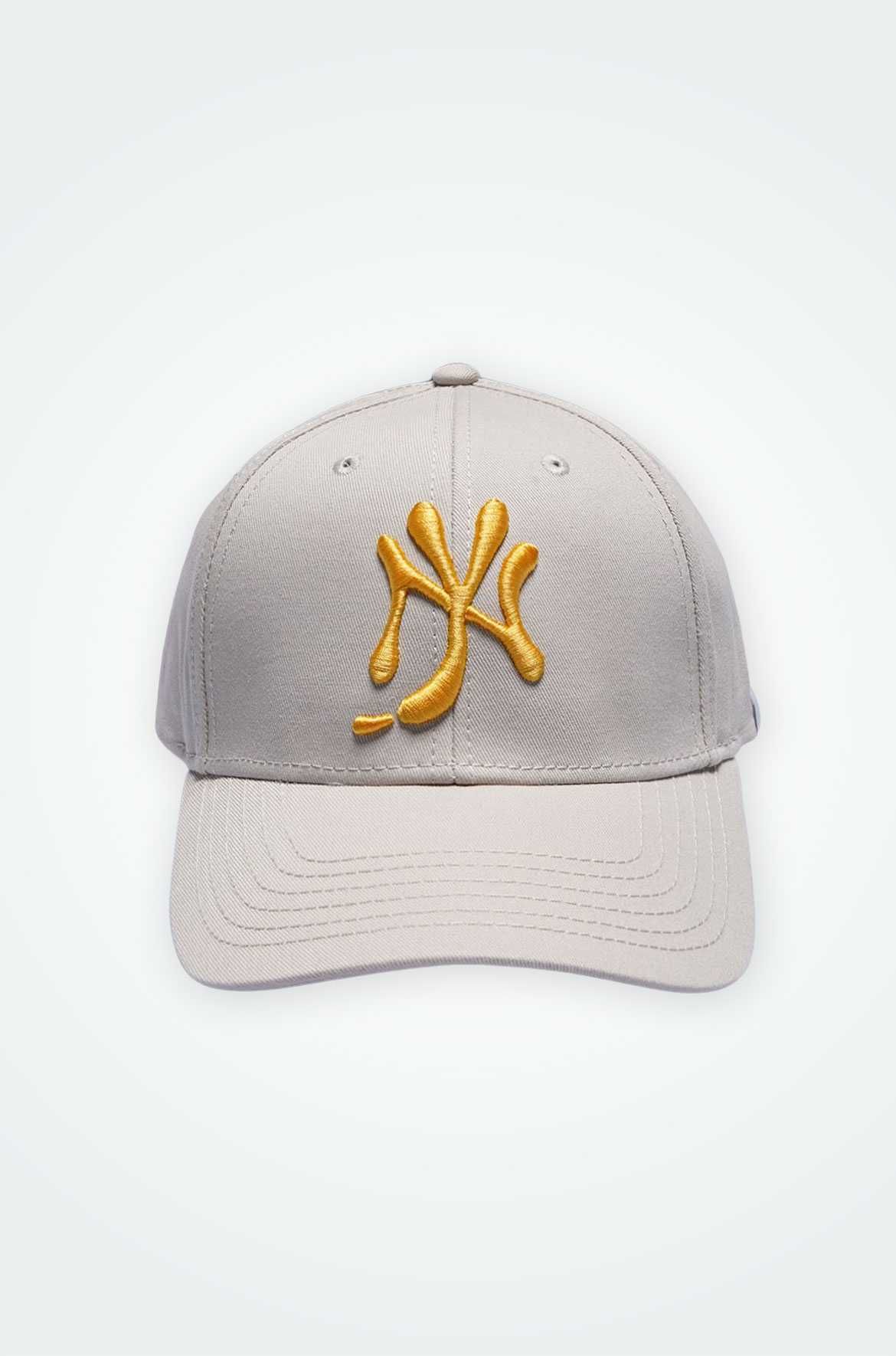 マスタードソースを模して描かれたNYロゴを刺繍したスポーティな"ベースボールキャップ"
